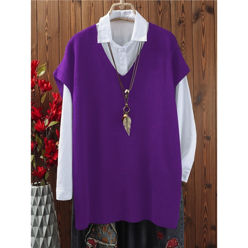 Material: Acrylic fiber Colors: Gray, Dark Green, Orange Red, Black, Purple, Red Style: Sleeveless, V-neck Sizes: 1XL–5XL